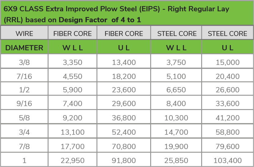 Wire Rope Efficiency Ratings are based on the Manufacturers U.L. (Ultimate Load) or Breaking Strength Rating.