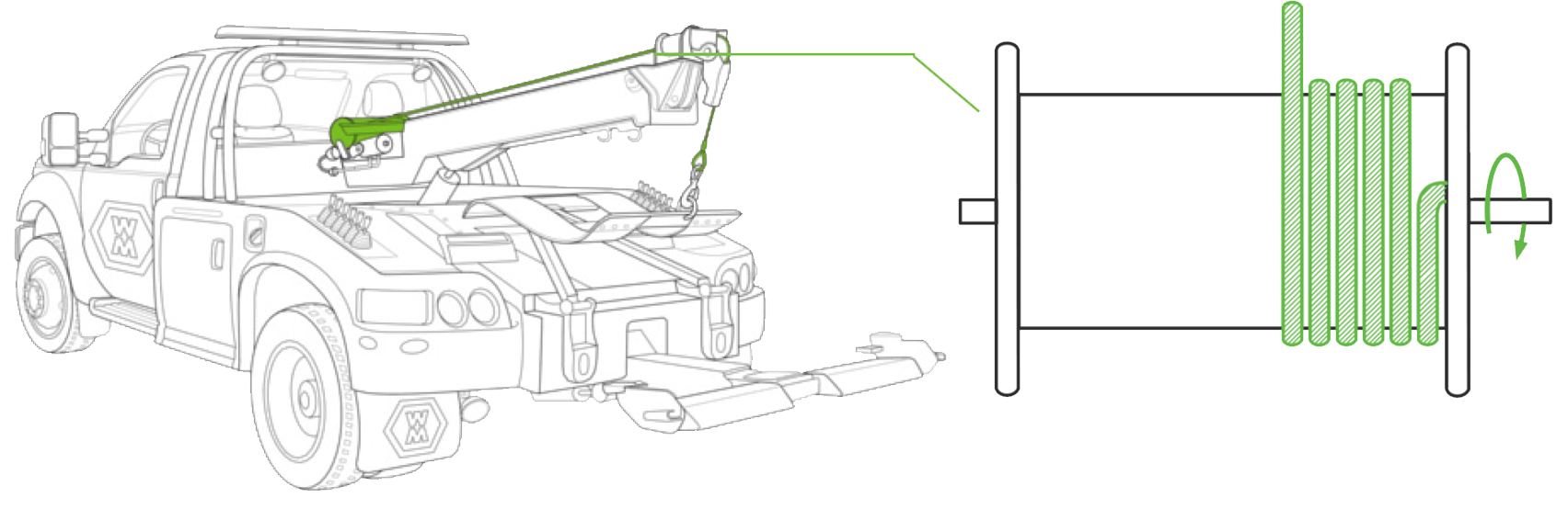 A winch drum needs a minimum of FIVE (5) WRAPS of wire rope before engaging the winch and loading your wire rope.