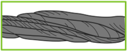 FIBER CORE: This type of wire rope is composed of a natural product such as – manila, jute, sisal, or synthetic products such as – polypropylene. Synthetic products offer the advantage of resistance to rotting, drying out and other forms of deterioration. Fiber core is usually impregnated with lubricant during manufacturing that acts as an internal lubricant.